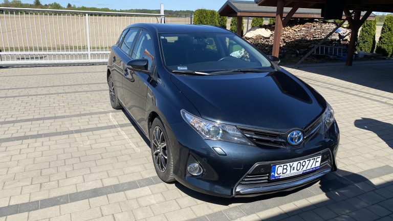 Samochód sprowadzony kilka lat temu do Polski. Toyota Auris Hybryda. Samochód miał delikatną kolizję w tył. Wymieniona maska bagażnika oraz zderzak tylny. Na masce bagażnika zaczyna się korozja na rancie. Diagnostyka baterii pokazała, że bateria jest w bardzo dobrej kondycji, Wnętrze zadbane lecz kierownica nosi największe ślady użytkowania. Wszystkie systemy sprawne, zawieszenie bez luzów, hamulce również w normie.
